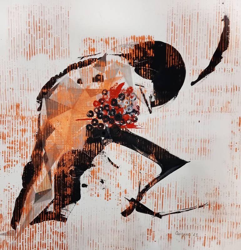 Iryna Calinicenco (Cairyna), 1984 Ukraine/Moldova. Iryna works at the intersection of Mixed Media and New Media techniques - by combining drawing, photography, collage and exposure to chemicals on the drawing. Plus the final digital manipulation. In Iryna's work over the years one can notice an increasing bias toward realism, an accent on semi-figurative images. She depicts distortions, as she does not believe in straightness and flatness of all things. Combines photography, drawing, and digital manipulation to emphasize structure and detail previously unnoticed by anyone else. Shows the difference between reality and her understanding of the image of reality, and proves that the truth is always subjective. Iryna's paintings are mostly semi-figurative, stylized to a greater or lesser extent, gravitating toward abstract aesthetics and naive imagery. Line and color are presented as something prevailing over form. It is a kind of play with the imagination and a flirtation with the viewer's fantasy. Working at the intersection of abstraction and figurativeness, using unusual materials, Iryna does not seek external harmony and beauty of the image, she plays with perspective and canons. In this way she reformats the viewer's aesthetic and emotional space from "I like - I don't like" to "I accept - I don't accept". In her works, Iryna emphasizes the duality of perception, encouraging the viewer to think and search for a different meaning. Get into the game and fantasize together with Cairyna!