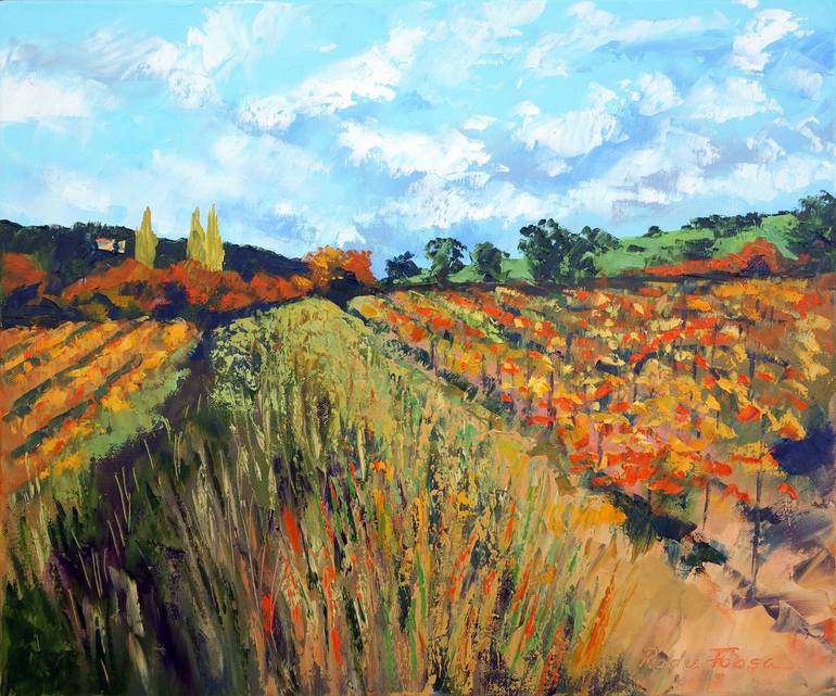 I called it "Autumn landscape with vineyard 2" why 2? because of the landscapes I paint a lot, especially in autumn with these flamboyant colors. This one I painted near the village of Roussillon in Provence, in the south of France.