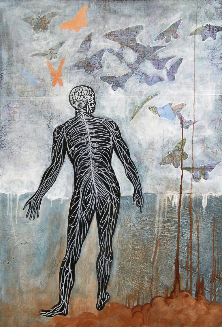 Born in Boston in 1975 and raised in coastal Maine, I earned my degree from Maine College of Art and moved to rural western Maine where I currently paint in my studio in the woods. My mixed media paintings and collages are inquiries into the relationship between nature, science and spirituality, exploring the the tenuous qualities of memory and perception. The meanings of images are broken down and assembled into new contexts to create mysterious narratives. The work evolves by layering paper ephemera and drawings with glazes and opaque oil paints, which simultaneously obscure and reveal. My art seeks to attain a deeper understanding of human perception, interaction with the natural world, and the ways by which we create our own realities.