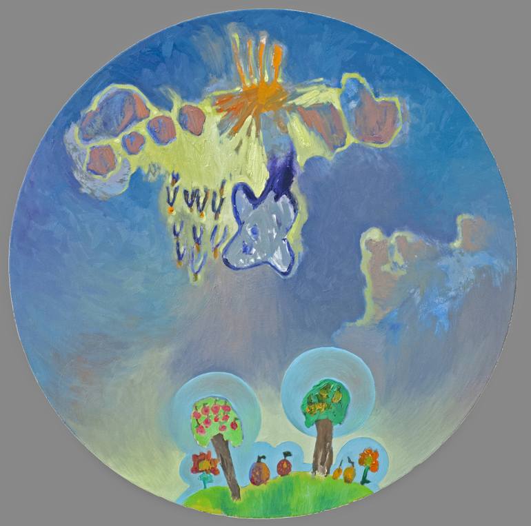 Painted together with my daughter Katherine on round shaped canvas, diameter 100 cm