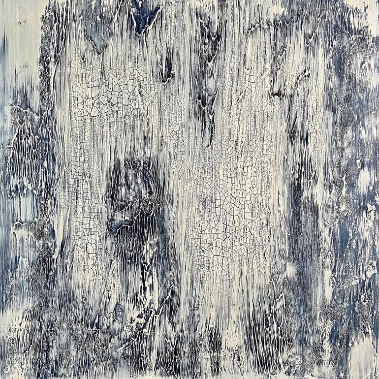 'Falling' (at your feet) is named after an amazing song by Daniel Lanios. The work is acrylic with a lot of texture. From a distance, the mood is calm and serene. Up close view shows the energetic detail of contours and crackle.