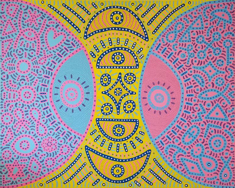 "Family Transcendence" is a work of art that delves into the depths of the connection between parents and children, guided by a vibrant palette of pink, yellow, and blue. In this pictorial universe, the runes intertwine, echoing the spiritual bonds that unite the family. At the center of the compos...