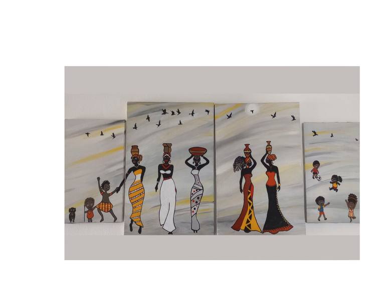 Family africa, Multi screens, 2 in the center measuring 40 x 30 and two on the sides measuring 20 x 30. Illustrate black culture with its beauty, colorful clothes, accessories and joy, even with all the difficulties.