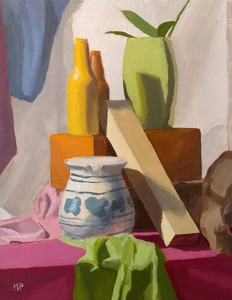 This oil painting was made in Winter of 2019, and it was my first exploration into painting on surfaces other than canvas. I enjoyed the process very much, as well as the subject, which was arranged by myself and fellow students in the studio at the University of Washington school of art.