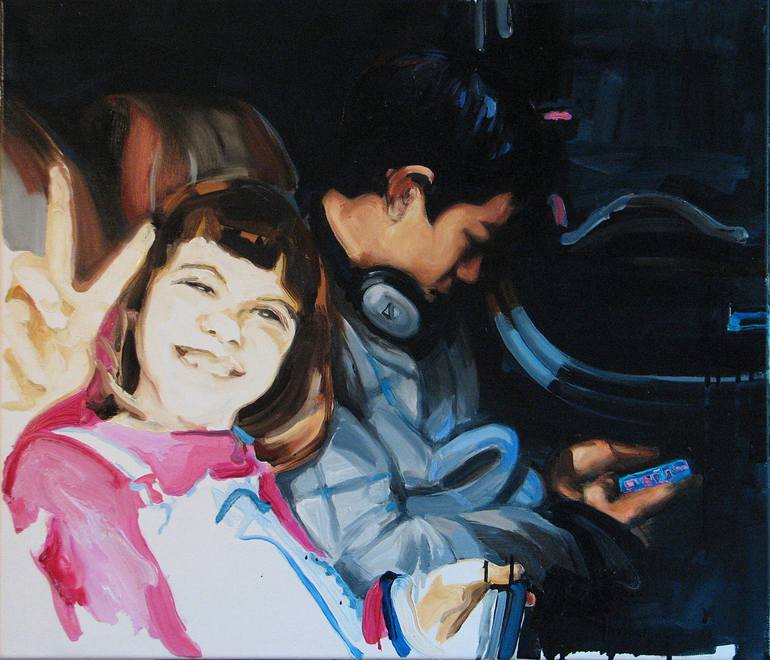 60x70 cm, oil on canvas; situation observed in the train: somtimes more important is that in the background; the title refers to the title of painting of Caravaggio;