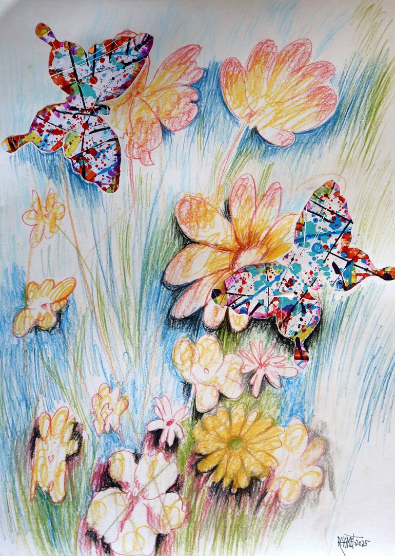 "Fantasy with Flowers" (series of 200+ pictures) paper 59x42cm On the paper acrylic, oil pastel, felt-tip pen, ink, gold leaf, pencils, silver,mixed media. Flowers are a smile of the sun that gives joy. When you think of flowers, in your imagination, as in a fun round dance, roses and carnations,...