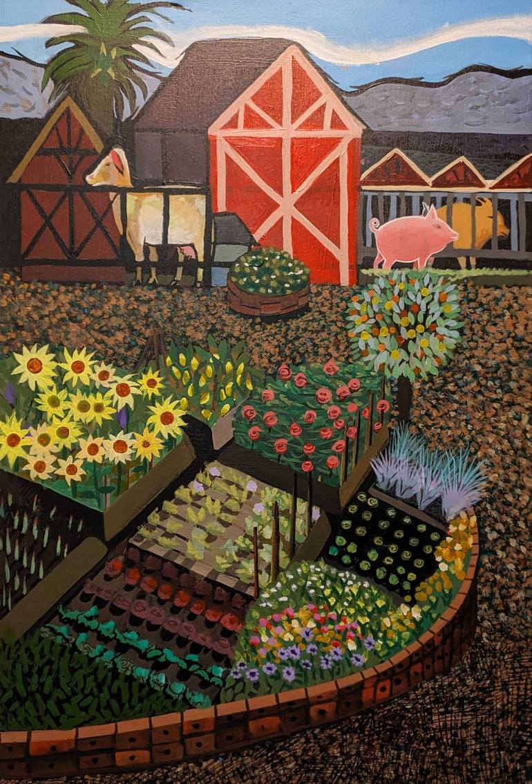 Regionalism, tidy geometry, yolo county, vanessa Stafford Inspiration, essence, sense of place, nostalgia. Acrylics are versatile, I have a nostalgia for Regionalism, farms I'm drawn to the feelings that àre inherently visual in farms My style is folk àrt, mixed in with my own style. I want the co...