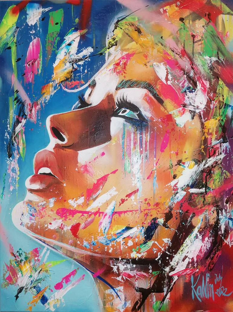 KaNim is a German painter with Turkish roots. Her art stands out for her female protagonists. Sometimes abstract, sometimes realistic - but always bold and colorful. She represents the conviction that colours are essential to moods. Her portraits represents fierce, strength,pride and freedom. She is addicted with flowers and adds them with naive representations to her portraits.