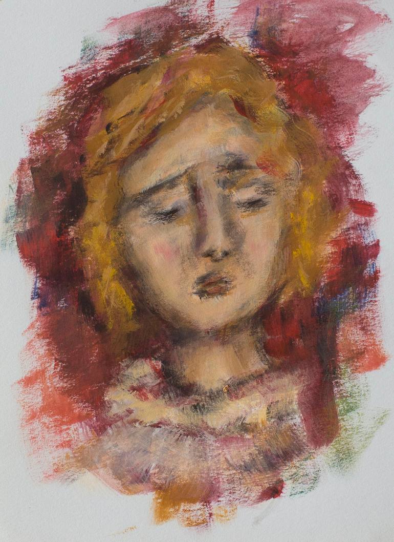 I don't remember what inspired me then, I think I just wanted to paint and maybe use the rest colour left on my palette. And I got this miracle portrait, which was the first in its kind, I felt I stepped to the next stage.