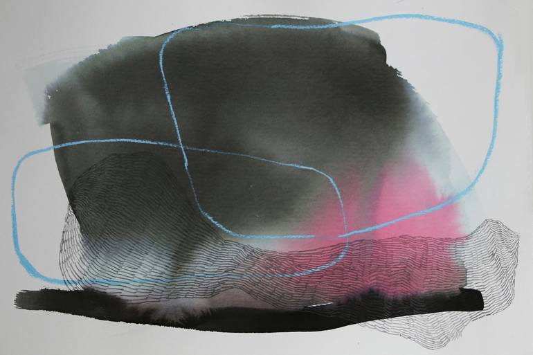 ARCTIC ABSTRACTS is a cycle of paintings, short visual stories, inspired by every day walks and talks, GPS tracks, knitting girls from the island of Senja and colors of the arctic landscape. They are all painted on 300 g watercolor paper. That one is a part of over 80 works on paper made in 2017 Fir...