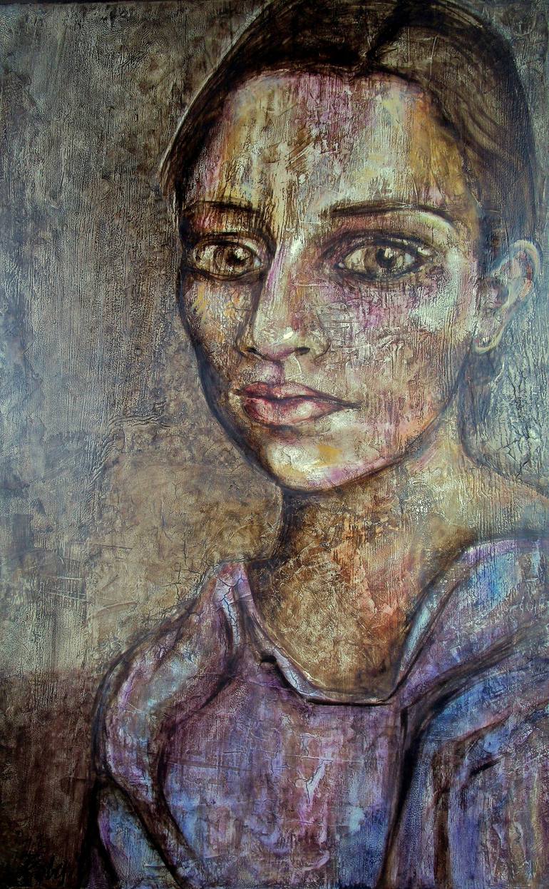 Oil on canvas prepared to stucco. It is a girl who looks at us. Maybe he thinks about the transience of life. Life is fleeting, it is unfair, it is short. I think, its author. If you are looking at pictures on a computer, you are one of the lucky ones.