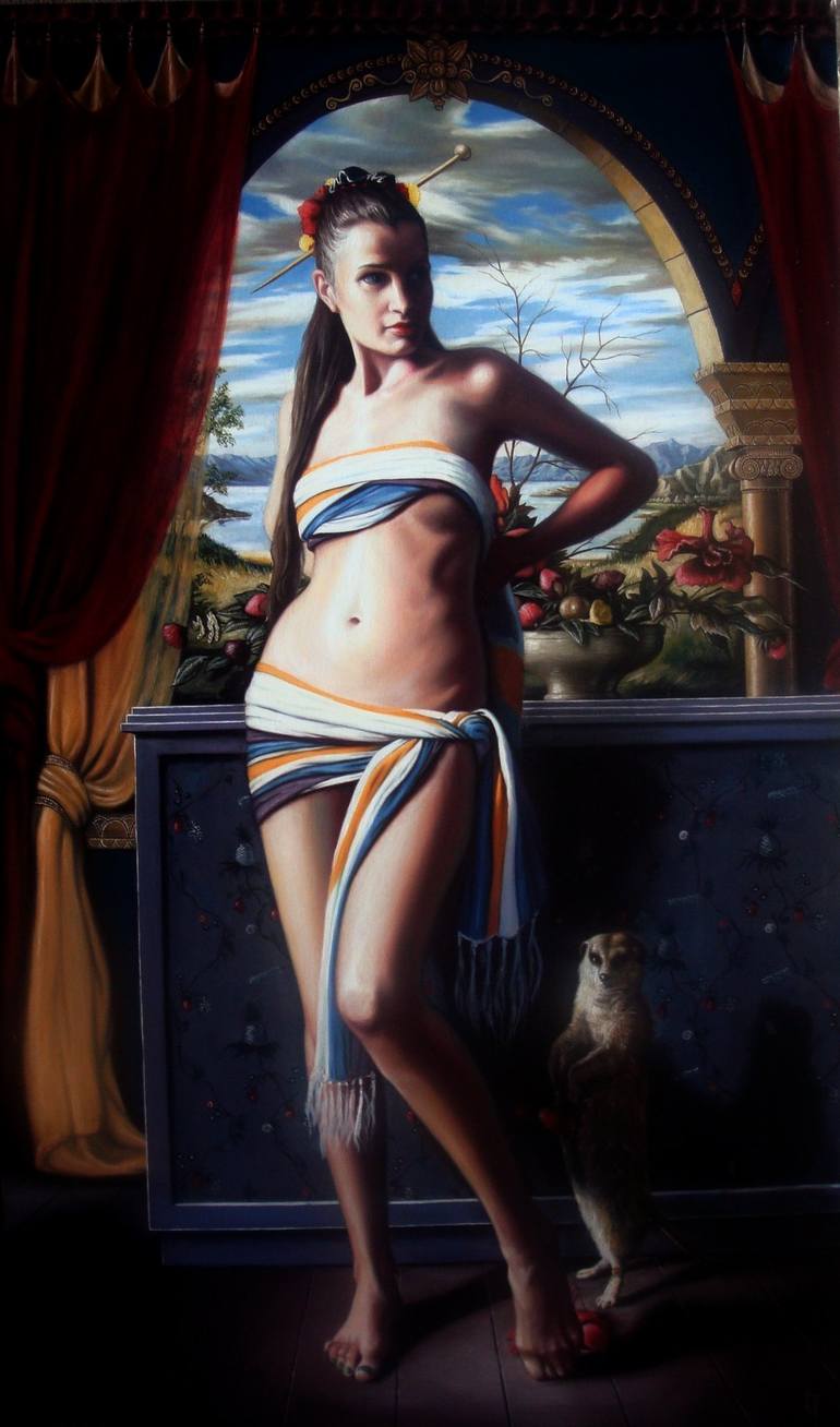 Title Fearless Bodyguard. Original painting.70x120,cm,Oil on canvas