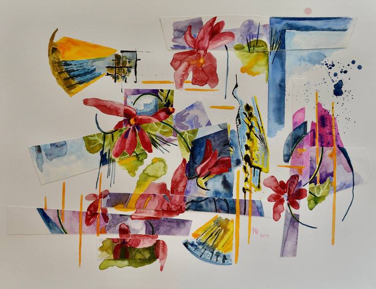 Watercolour art is evolving... so is Pamela Kenny-Levick's work. Part of her series Poetry on Paper, this pice is an exploration of colour, shapes and empty spaces. The work sings out to us in a happy, feel good, groovy way.