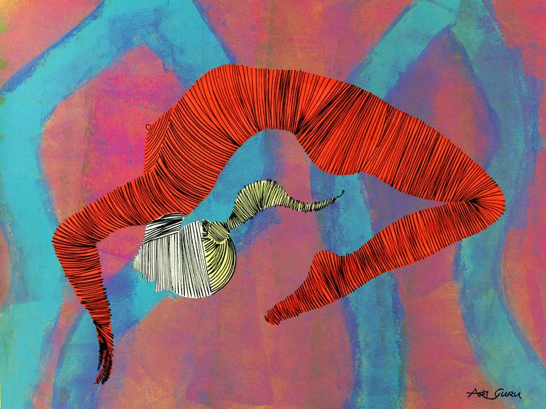 TITLE: Female Nude Bending Backwards By ArtGuru 9595A - Acrylic On Paper 100% HAND-DRAWN ORIGINAL SIZE: 3x4' MEDIUM: LatroArt CONDITION: Brand New / Excellent. Comes rolled in a tube. Signed Front and back with certificate of authenticity provided. ABOUT THE DRAWING: This piece depicts a woman be...