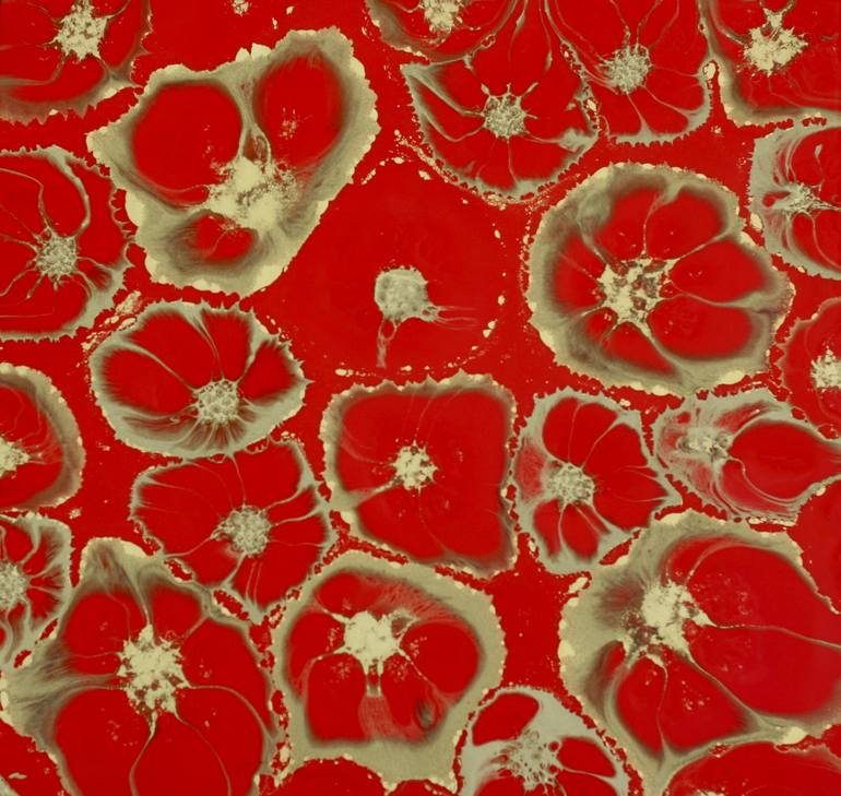 This piece was inspired by the festive decorations and flowers seen over the Christmas period. After the board was primed, several layers of tinted resin were applied to create the drip effect seen around the edges of the entire piece. A final red and gold resin layer was then applied and manipula...