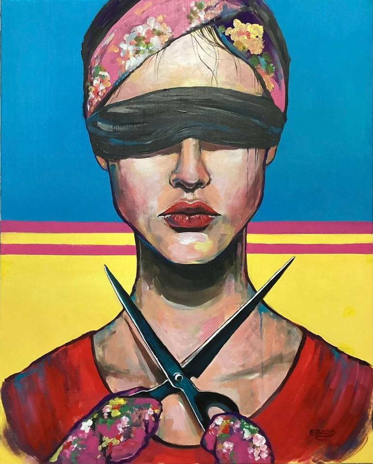 In crafting this painting, I tapped into a vivid tableau of emotions, using a bold, expressive color palette to dramatize the quest for justice and truth. My work deliberately incorporates elements of the abstract, figurative, and impressionism to evoke a sense of dynamic tension. The blindfold repr...
