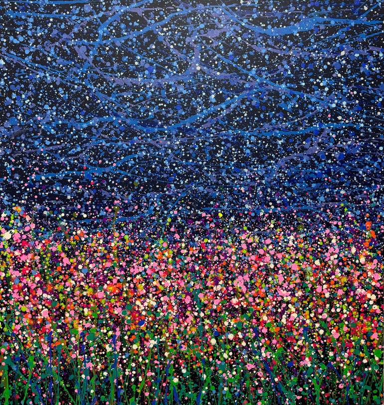 In this piece, I sought to capture the mesmerizing interplay of a starlit sky with a vibrant, flowering meadow. Using acrylics, I expressed the raw emotions of awe and tranquility. The multitude of flecks and strokes symbolize the myriad possibilities and beauty in the universe. With its energetic c...