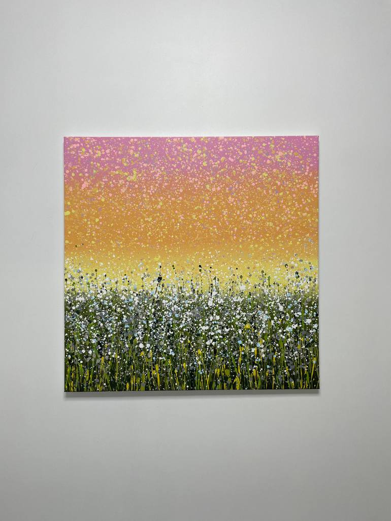 Title of work "Field with flowers 85" The painting is written in the style of abstract expressionism.This work was created by acrylic on canvas. The work is signed on the reverse side. Size 80x80 cm.