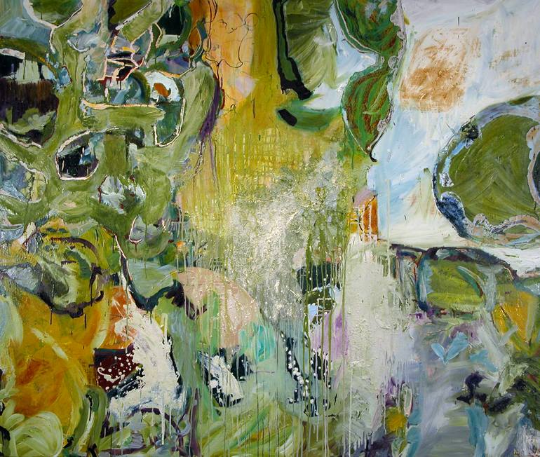 Jennifer Laura Palmer was born in Bethlehem,Pa and received a B.A. in Art and Political Science from Cedar Crest College in Allentown,Pa. She pursued her M.F.A. degree in painting from the Savannah College of Art and Design and graduated in 2006. Her work is influenced by location and she is motivated to paint by expressing the events she experiences in her daily life. Palmer resides in the Kentucky countryside and paints from the rural setting of her studio located in a Yellow Barn on the property. Jennifer is inspired by the scenes and wildlife that she sees from her studio window and she incorporates these experiences into her artwork. These images are filtered through memories and dreams to capture a sense of a place. The works become maps of these fictional places full of layered imagery from her surroundings and travels. Jennifer Laura Palmer’s artwork is about showing the whimsy and wonderment of what surrounds her, through the use of layers and multiple mediums. She stated that her work “is a transitional space that marks contemplation of the past, the future and memories. In the process, these ideas converge and the creation emerges showing the journey. It is an odyssey of discovery of my relationship to everyday life, and the development of a personal language to express the fragments from these experiences. The final result is the creation of dreamscapes.” Jennifer Laura Palmer’s artwork has been featured multiple times in the publication Studio Visit Magazine and also selected for inclusion in New American Paintings: Southern, Volume 64. The juror for New American Paintings was Trevor Richardson the Director of the Herter Gallery of the University of Massachusetts at Amherst. The juror stated that Palmer is credited for having “evolved a highly personal mode of expression within the syntax of contemporary abstract painting.” In addition she was selected to be included in the viewing program at the Drawing Center in New York City. Jennifer’s work has been exhibited nationally and she has attended the Vermont Studio Center residency in 2006. Currently, she is residing in Kentucky with her horses and taking daily photographs of her adventures. When she is not on the farm she is teaching art classes at area colleges and universities and is an art editor at Dialogist.