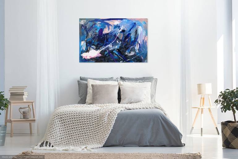 Australian abstract artist Marion Parker has painted a large canvas bold abstract expression. Fiero Blu translated is Italian for 'proud blue'. This painting was painted using fast brush-strokes, dripping, spashing and moving the oil around the painting from all angles. I love the different shad...