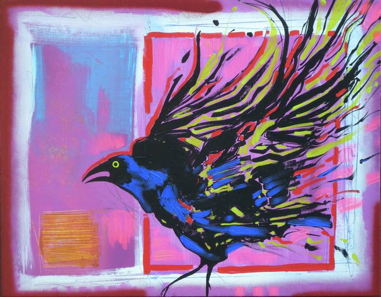 I have been fascinated with crows lately. We seem to get a group or should I say a murder of crows at the birdbath every morning now. It's quite entertaining to watch. They are very social and chatty. This painting is ready to hang and is a one of a kind original artwork. The gallery wrapped canvas ...
