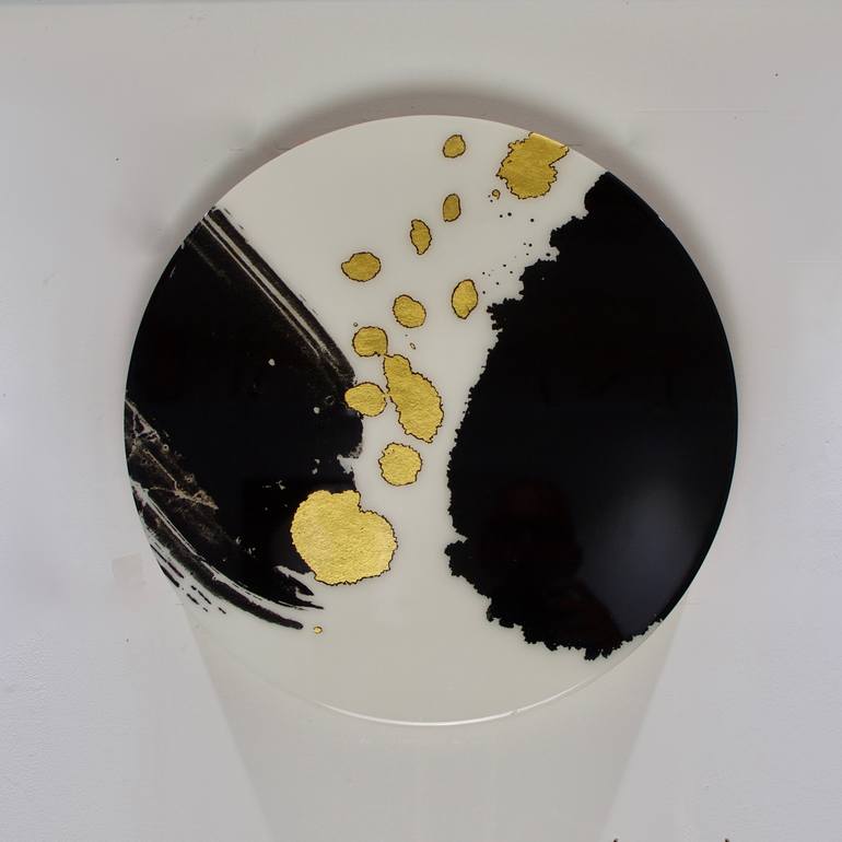 An original ink painting on Chinese mulberry paper, with a 24carat gold leaf embellishment. The painting has been traditionally mounted with archival wheat paste to a substrate of Fabriano cartridge (120gsm) on a circular birch panel. The egdes of the panel are bees wax polished wood and the paintin...