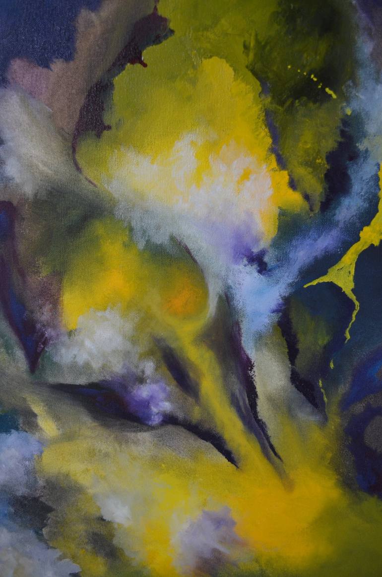 Intuitive paintings start with a blank canvas, as do all paintings, but this one more so. I had no idea what to paint. Rather than go read a book I picked up the first color that attracted my attention and applied a colored shaped that was off center. The next step was to use a different color an...