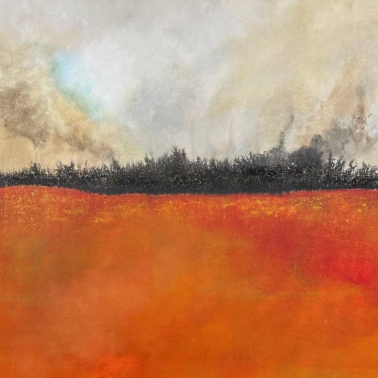 I'm attracted to barren landscapes. I drive across the plains of the Midwest USA quite a bit and am amazed by their desolate beauty. Most of my landscape pieces have a similar feel to piece with plains in the foreground and a split sky. This piece is available as a print only.