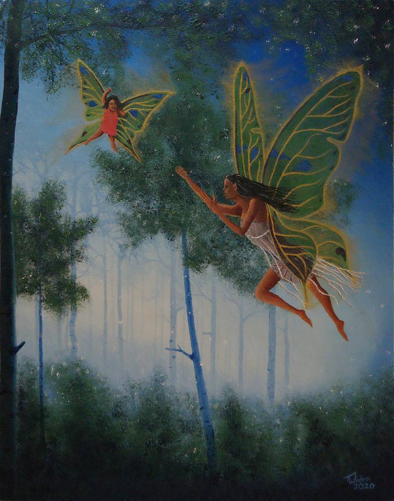 As part of my Wildlife Moms & Babies series, I had the idea of portraying the exciting event of baby's-first-steps, but in the fairy world. My first task was to create a fantasy-style background for the fairies to live in, but the biggest challenge for me was my first painting with a human face. I s...