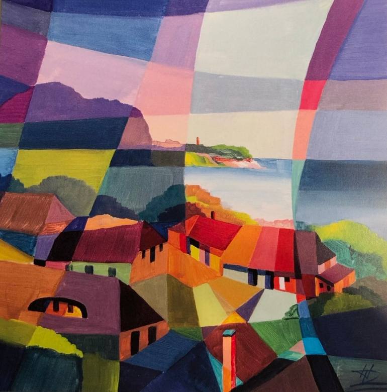 This painting is a work of art, offering a new perspective on the fishing village of Rügen Island, Germany. I used a modern cubist technique, blending vibrant and contrasting color blocks to capture not only the landscape but also the soul of this place. The warm tones of red, yellow, and orange st...