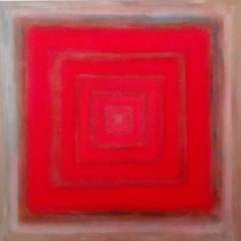 This is another so called colorfield painting which means that the expression of the color itself is important. Here I painted five red squares which become lighter to the center and have soft edges. I used pigments and binder in a lot of layers. So there is a spatial illusion. Sometimes it's like l...