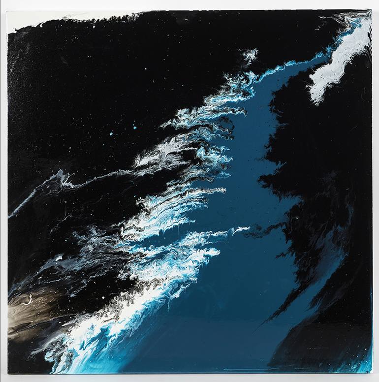 This work is inspired by the complex coastline of Scandinavia. My paintings are landscapes but subjective landscapes, celebrations of a fantasy land. They are created by manipulating the flow of the paint and the finished work can be interpreted in a myriad of ways by the viewer. It is titled "Fjord...