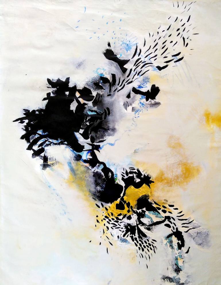 This work is based on experimentation and play and is the result of expressive strokes on canvas. I usually use canvas and cotton paper as supports, and a mixed technique (charcoal, ink, acrylics, watercolour, markers)