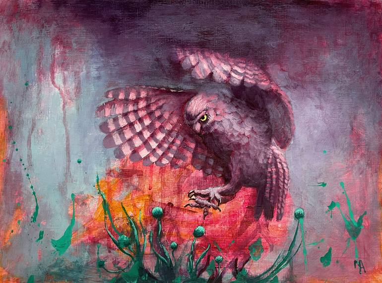 ''Flapping wings''(2023) materials: Acrylic painting on professional paper UNFRAMED measures: 12” x 16’’ (30 x 40 cm) Initials on the front Signed and dated on the back Please feel free to contact me with any questions regarding this painting. Thank you for looking