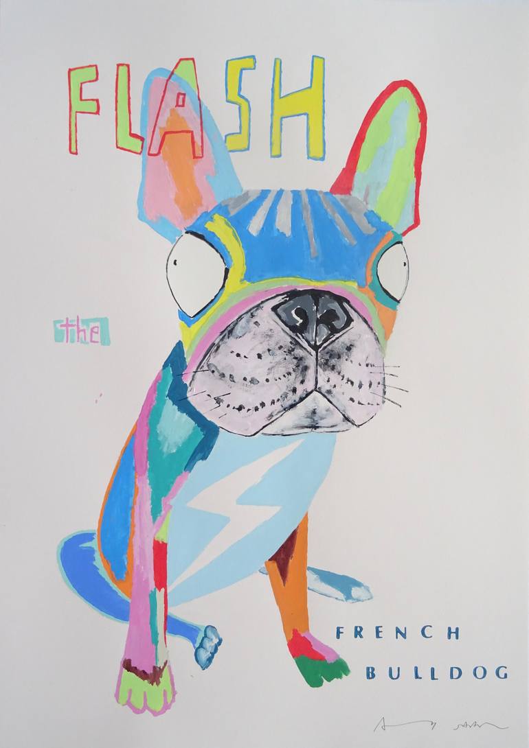 Flash Gordon the French Bulldog Acrylic on paper 2018 Signed by Andy Shaw Ready for framing
