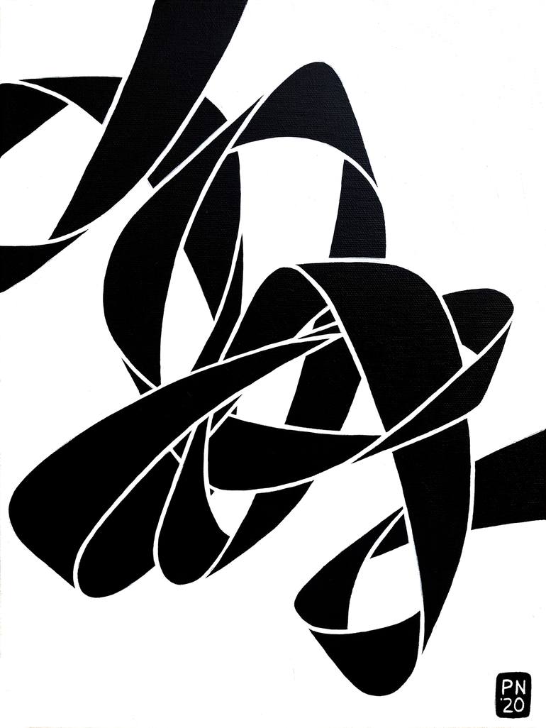 This piece is part of a series of paintings that serve as a counterpoint to my more three-dimensional ribbon paintings. This series flattens the knotted ribbons into silhouettes, giving the impression of a shadow, or something that was once there and now is gone.