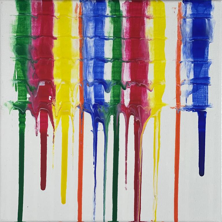 The painting features a waterfall of colors that pours colors on the stairs and keeps running until the last step in the middle of the painting. which gives the feeling of flooded stairs. -Handmade. -Limited Edition. -One Of Kind - Art piece sequence 10 from the collection of 1,000 different pieces...
