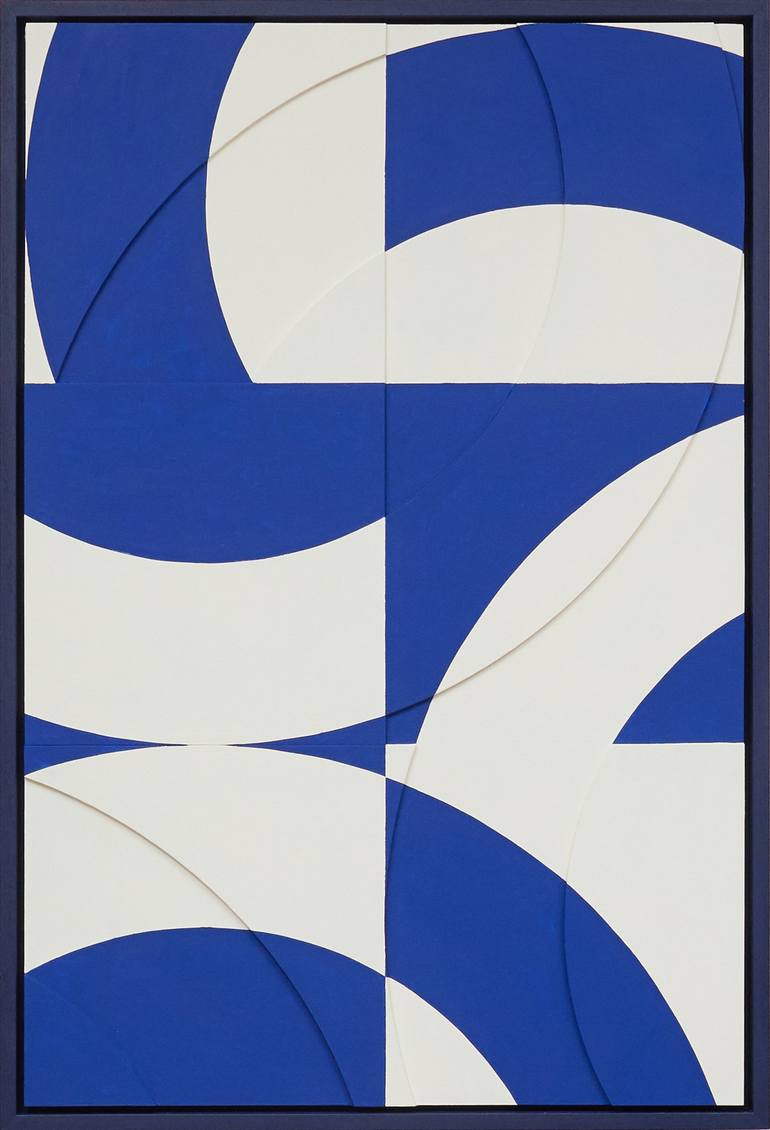 James D Wilson (b.1982) is an artist and designer based in South East London, UK, working predominantly in paint and relief on layered surfaces constructed from cardboard and wood. His process starts as an act of reconstructing a memory of a time or place using fragmentary, visual phrases that make up an environment that have been held in the mind. In re-assembling and remembering, the resulting composition ride the line between abstraction and figuration combining bold, reduced graphical forms with the language of landscapes, both architectural and natural. The materials used in his works, together with their limited colour palettes have a utilitarian quality to them, following in the footsteps of constructivist/concrete artists of the 50s/60s. The cutting and brushwork are predominantly made freehand with no masking tape involved, which lends itself to feeling more human. There is a tension between the planned and unplanned, the finished and unfinished, the loud and the quiet. The pieces featured here all contribute to an ongoing exploration into expanded painting, visual rhythm and negative space.