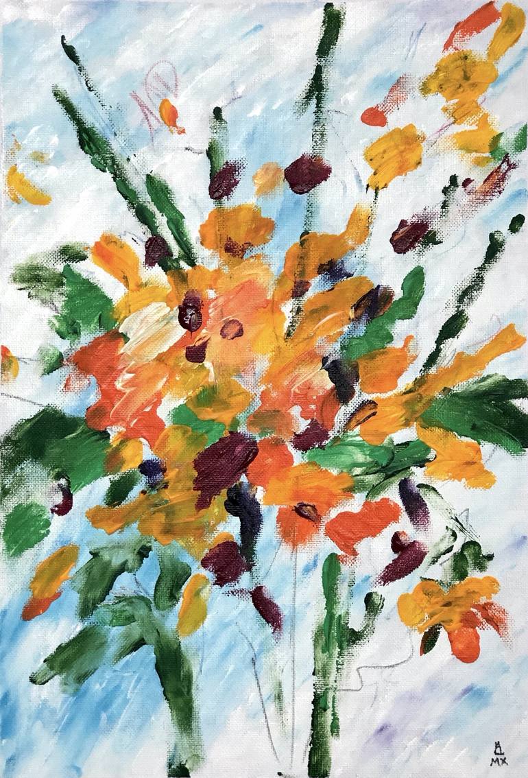 Part 2 of 2 from abstract "Floral Untitled 2" diptych. 2020 Original painting by Michael Khripin. Signed on front and back sides (date, location, signature, title). This painting has an additional 2.5cm (1 inch) of extra canvas on each side. Unframed. This work will be shipped in a protected tube.
