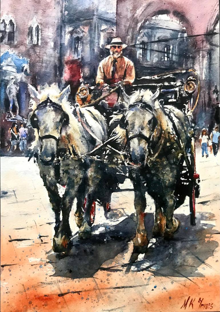 original painting of vintage horse-drawn carriage in Florence **this is 100% Original, one of a kind artwork and once sold it will no longer be available for purchase*** Medium: professional artist grade watercolours on Arches 300g 100% cotton watercolour paper one of a kind artwork title: "Floren...