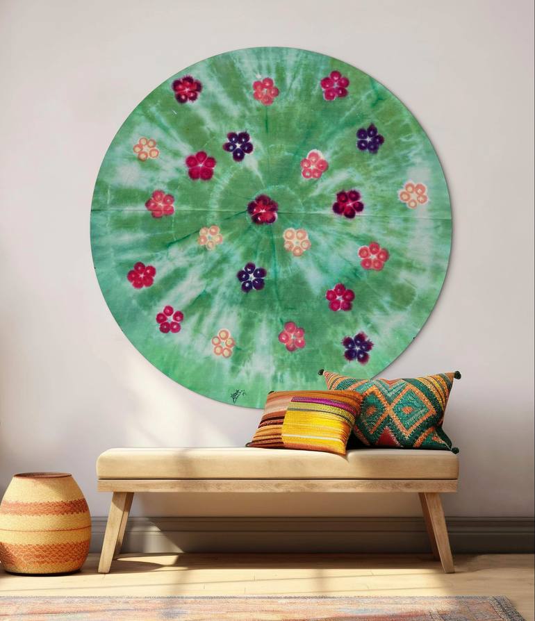 Art is woven into my DNA. My grandfather, Gleb W. Derujinsky, was a renowned sculptor; my father, Gleb Derujinsky, a celebrated Harper’s Bazaar photographer. Growing up surrounded by their creativity, I developed a lifelong passion for artistic expression across mediums. My journey began with two decades as an award-winning jewelry artist, challenging conventions and elevating beadwork to fine art. Later, I preserved my father’s legacy through the publication of Capturing Fashion Derujinsky (Flammarion, 2018). Today, I reimagine traditional dyeing as fine art, using the same heavyweight cotton canvas favored by master painters. My process—layering permanent watercolor dyes onto meticulously prepared, hand-cut circular canvases—results in vivid, immersive works that explore space, nature, and human connection. Each piece is crafted with technical rigor and a spirit of experimentation, inviting viewers to engage with movement, imperfection, and depth. My practice is self-directed, shaped by decades of hands-on exploration, innovation, and a deep-rooted family legacy. I am committed to pushing the boundaries of textile and painting, creating art that bridges tradition and contemporary vision.