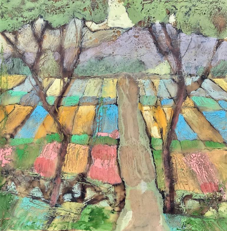 I am inspired by the local agriculture near the coast where I live. I chose encaustic for this painting because of the way the wax melts to form a realistic effect.