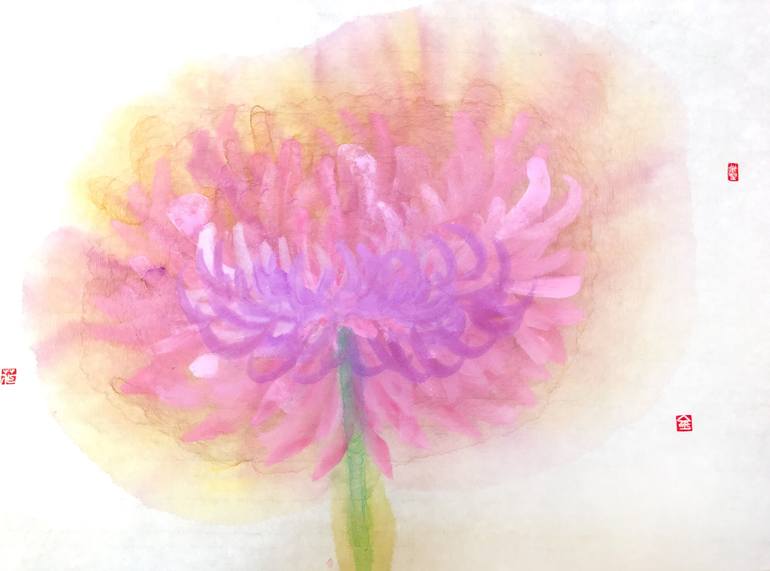 Flower Universe Series 020 Painting: Ink on Paper flower is a flower. write by Poonkanchi. 2021 JAN 19 _____________________________ will send with a new wood frame ,ready for hang on wall.