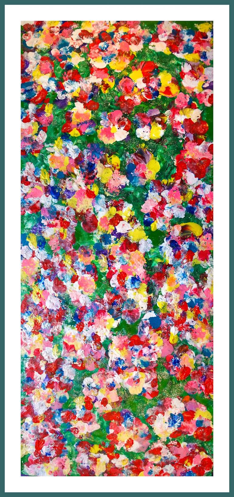 There is nothing more beautiful than a walk through a flowering meadow early in the morning with the first rays of the sun... The vibrant color of the artwork is the feeling you get when you take a morning walk through a blooming meadow... Acrylic on canvas, 120 x 48 cm.