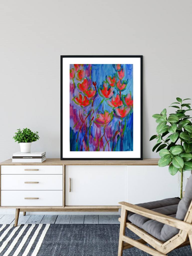 This is a light and fresh semi-abstract landscape with flowers. I've created a marvelous day - a combination of colorful flowers and shimmering lights and shadows. This painting will bring a calm and fresh mood into your room. This painting is signed on the back with a Certificate of Authenticity. ...