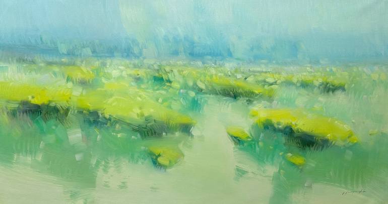 Artist: Vahe Yeremyan Work: Original Oil Painting, Handmade Artwork, One of a Kind Medium: Oil on Canvas Year: 2023, Style: Impressionism, Subject: Flowers Valley, Size: 29" x 56" x 1'' inch, (74x143x3 cm), Unframed, Stretched on Wooden Bar, Gallery Wrapped, Ready to Hang. Yeremyan is an Ame...