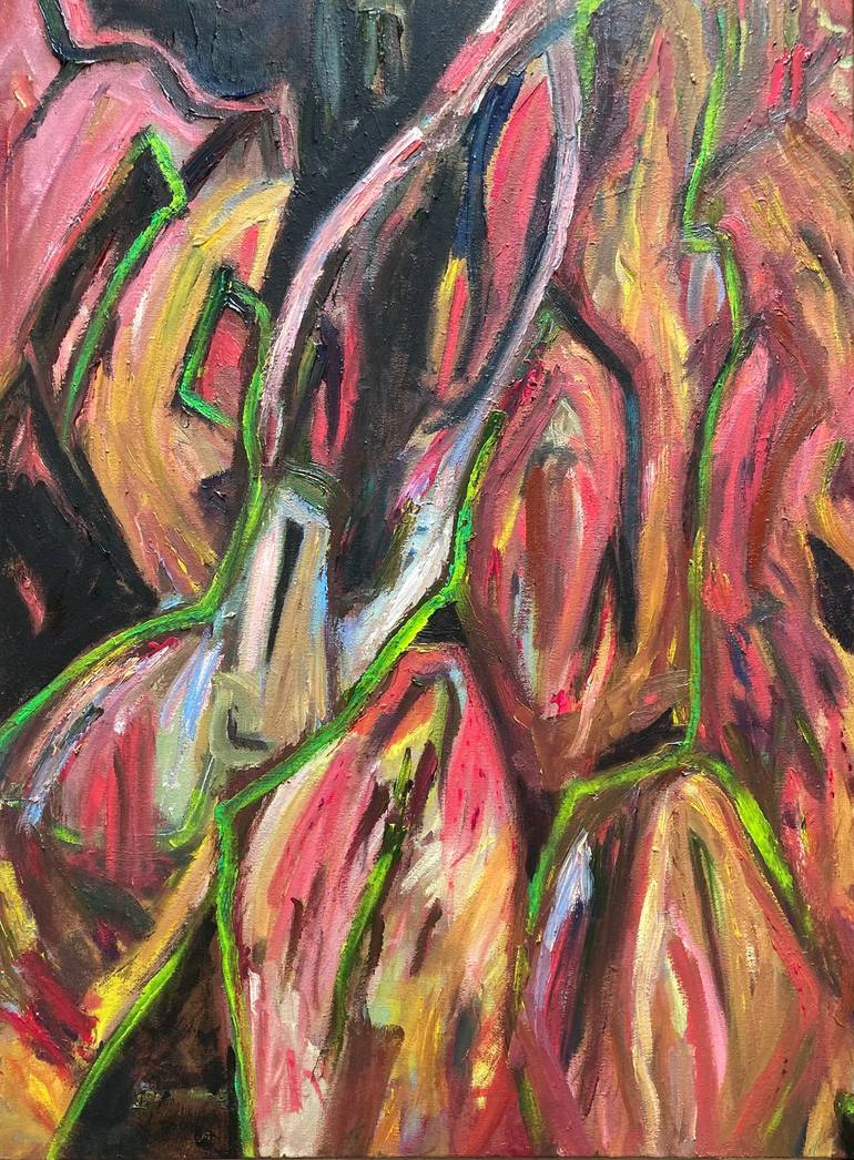 I would like people to find and enjoy mystery in my work, and in the minutiae of life that inspires it. I hope that my paintings will give rise to questions and unlock new adventures in the viewer's own imagination each time they look. Texture, memory and all the senses play their part in the stories each viewer will bring to a painting. Much of my work comes from being outdoors, walking, travelling by bus or by ship or by train, and the restlessness of the sea. Movement and energy are an important part of my work and of my creative process. I respond in colours and strokes to the shapes I encounter in the urban and natural world. The urban jungle encroaches even on my Island home, though I do still sense the exotic and the adventurous. The urban adventurer is on high alert each time she leaves her front door. There are always hazards to navigate, roadworks, rail strikes or floods. We are nervy like cats, wide-eyed and wary, while assuming an air of nonchalant boredom with all that impacts our senses. The world is an exciting and richly exotic place of adventure, both because of what we have made in it and because of what was already there in it. Travel, colour, movement and mystery are always present in my work.