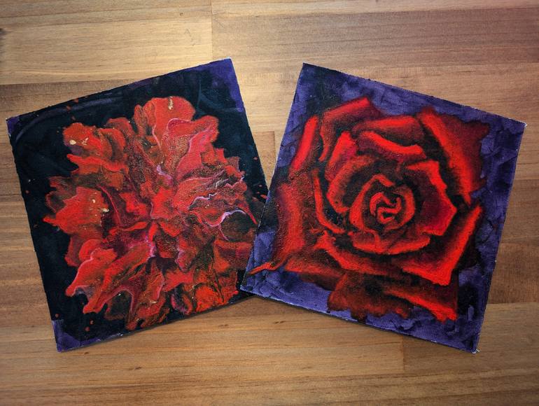 Set of two square pictures of flowers on a dark blue background. Needs a frame. Comes with a certificate.