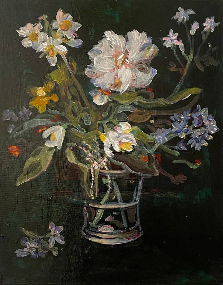 Flowers in the Vase imitating the baroque painting style