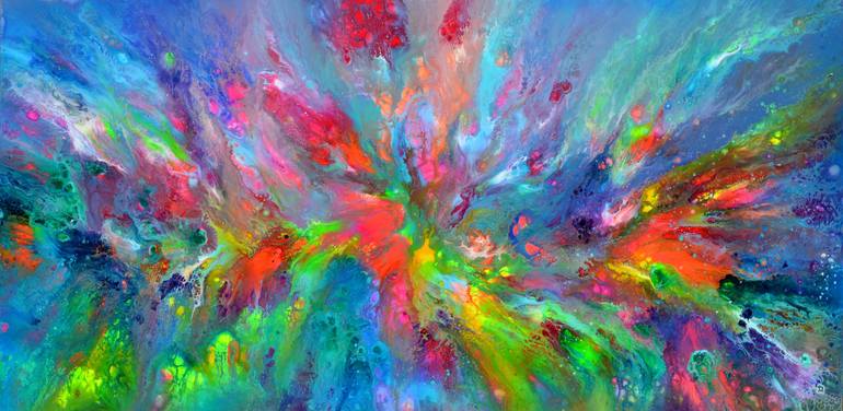 READY TO HANG - GALLERY QUALITY with the edges painted. Dimensions: 160x80X4 cm - 63x31.5x1.6 inches. Some neon nuances could not be caught by the camera. I sign and date on the front and I also will put my relief signet on the back. I also attache an certificate of authenticity for every piece of a...